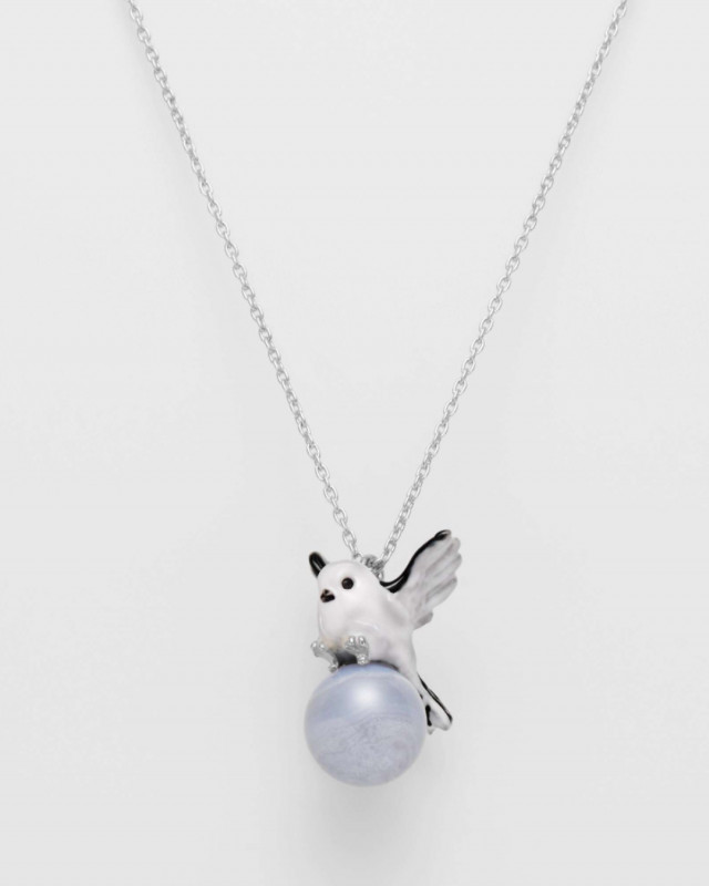 アクセサリーは柊の赤い実をくわえた愛らしい姿や、木の枝から颯爽と飛び立つ姿を表現。冬毛ならではのふっくらとしたシマエナガの羽毛の質感を、熟練した職人が一つ一つ手作業で描きリアルに仕上げました。