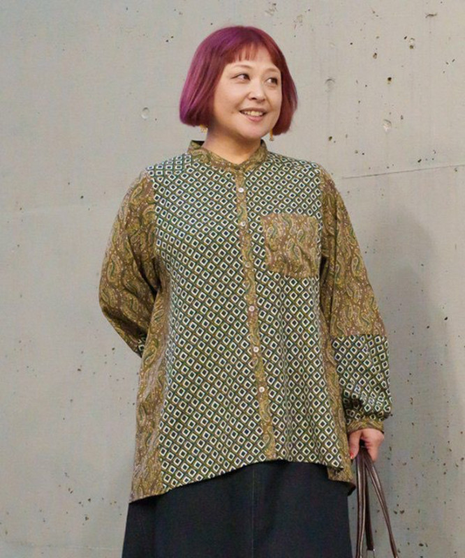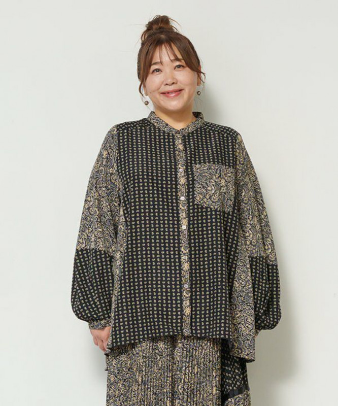 ペイズリー×MIX柄が目を惹く、表情豊かなバンドカラーシャツ💖