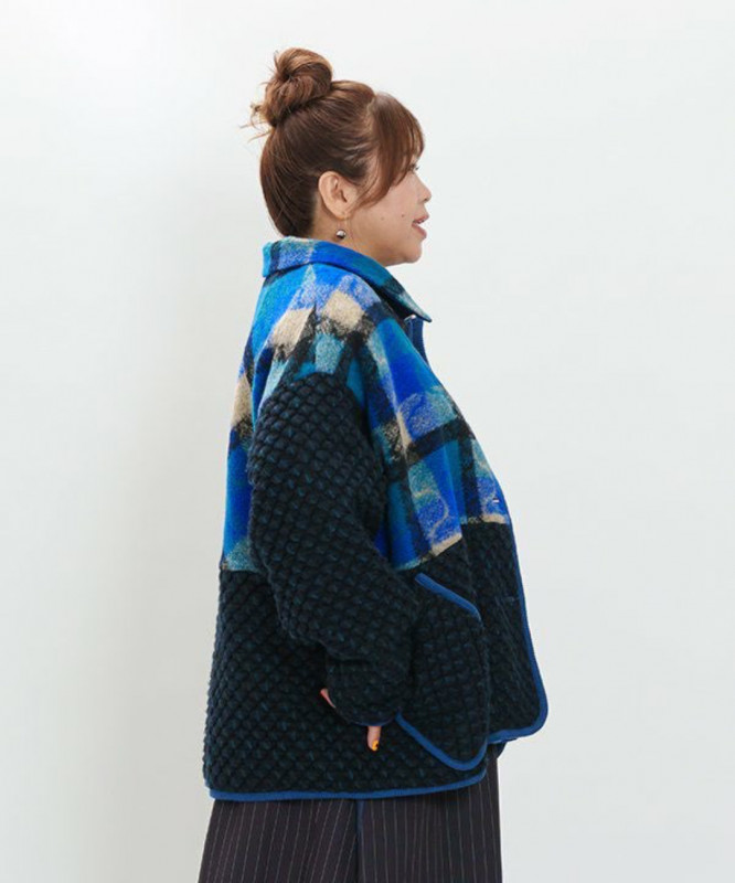 軽量かつ、前開きのボタン仕様で着脱しやすく前身頃とポケット周りにはニットテープをあしらいました✨