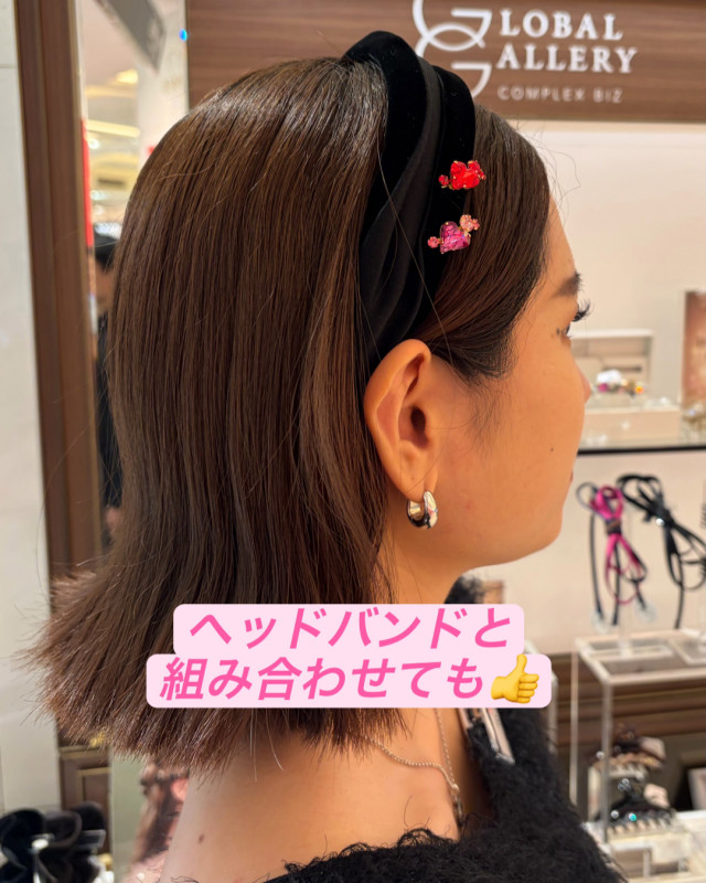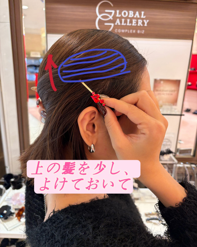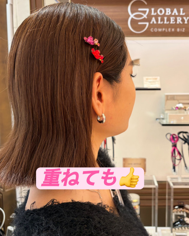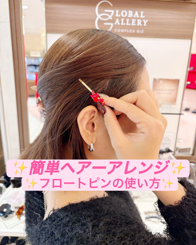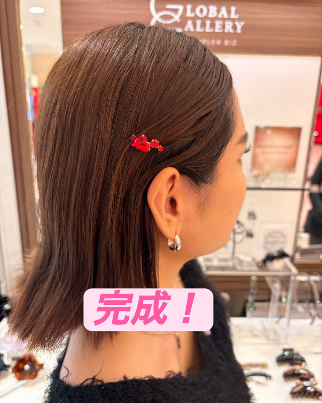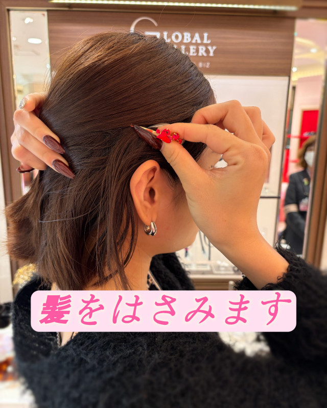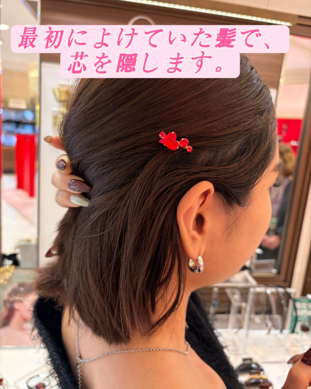 付けるとピンの、飾り部分だけが見えてキレイに仕上がります♪