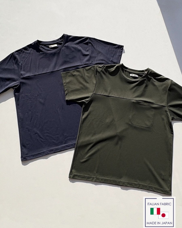 Tシャツは、胸元の切り替えにポケットを付けたことで、1枚で着てもスタイリッシュな印象に!
