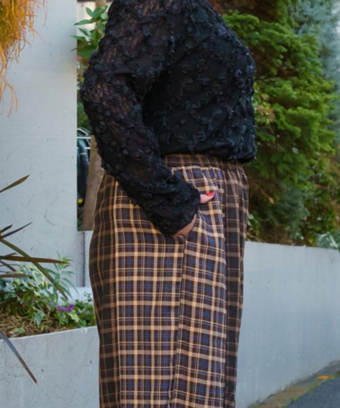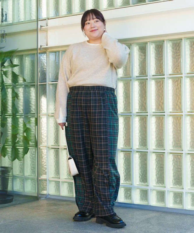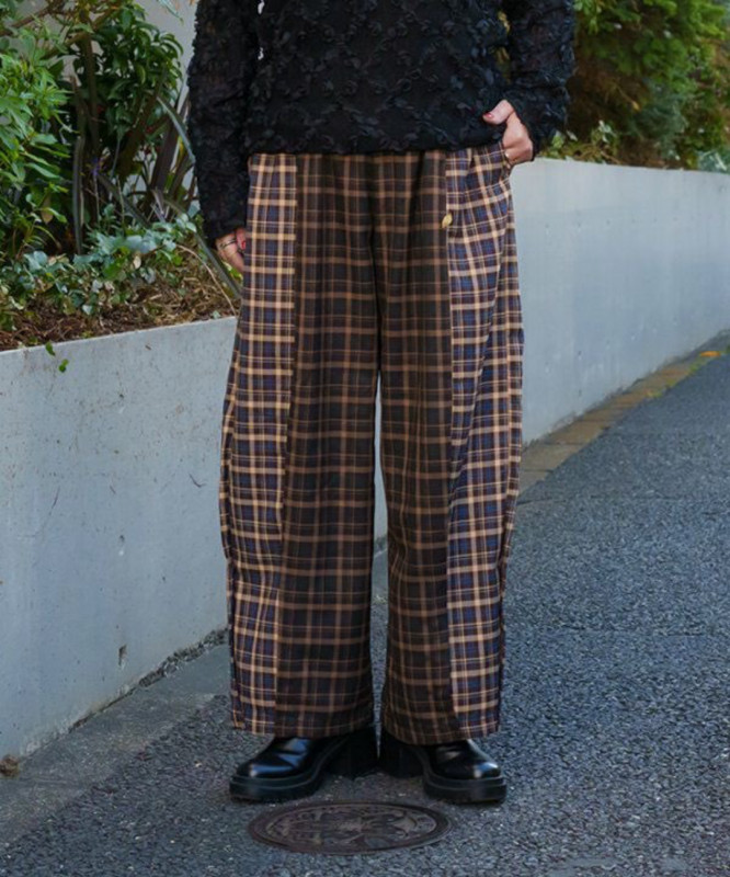 2種類のチェック柄を組み合わせ、奥行きのある表情に仕上げたデザインパンツ🌟