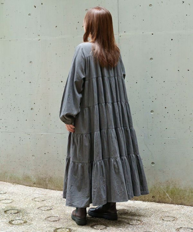 たっぷり寄せたギャザーとティアードデザインでふんわりと広がり、女性らしい印象に仕上げました🍀