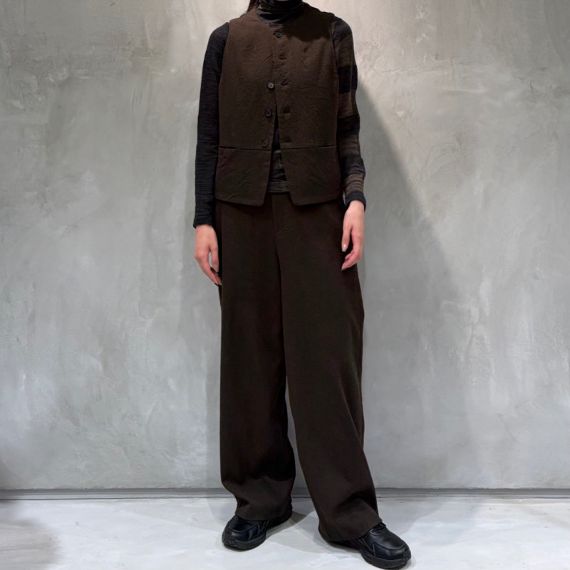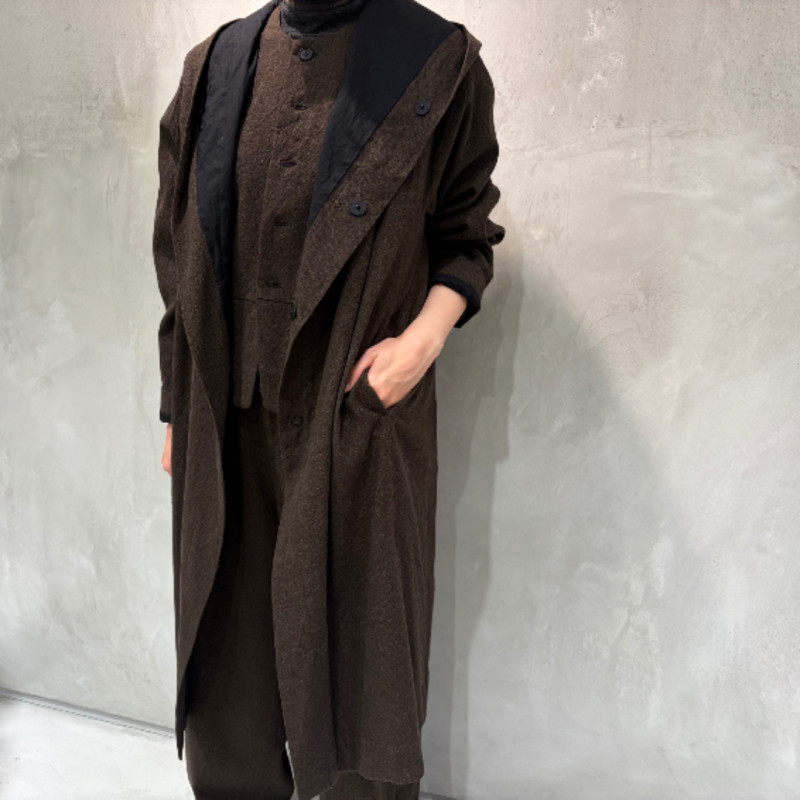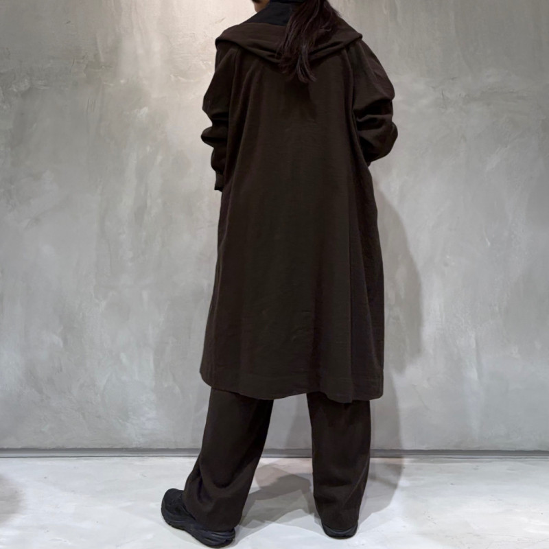 英国羊毛のような膨らみや反発感が特徴のノンミュールジングウール原料をタテ糸に使用し、ヨコ糸には綿を使用することで、より一層の膨らみと柔らかさをもった独特な風合いに仕上げています。