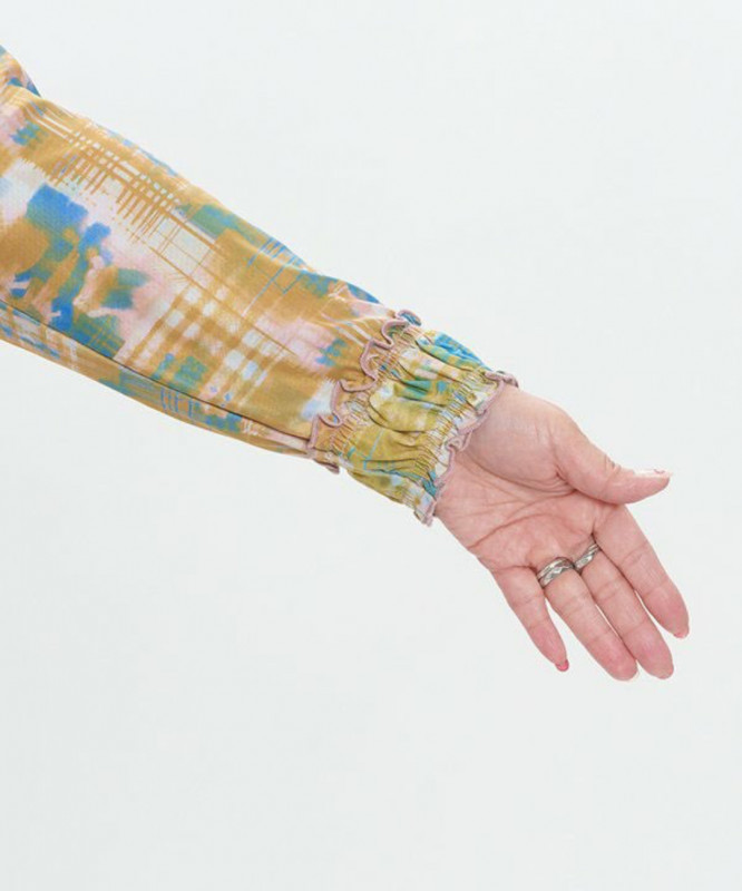 衿ぐりと袖口にはフリルをあしらい、華やかさをプラスしました💐