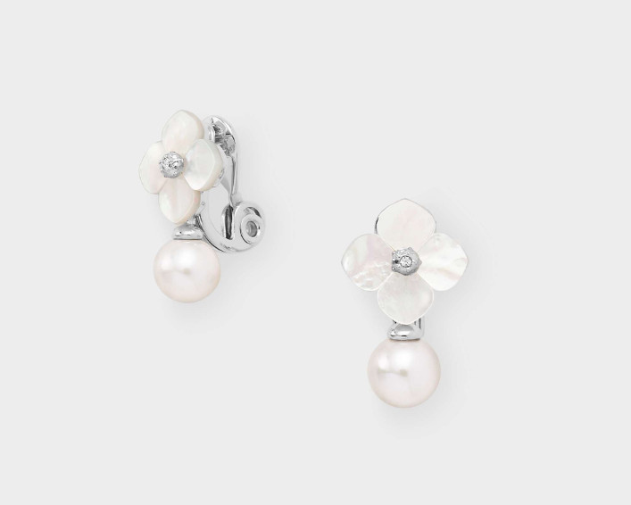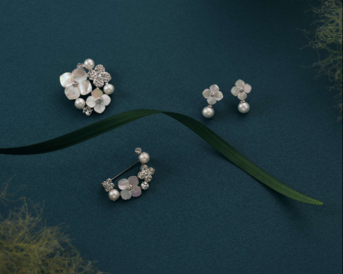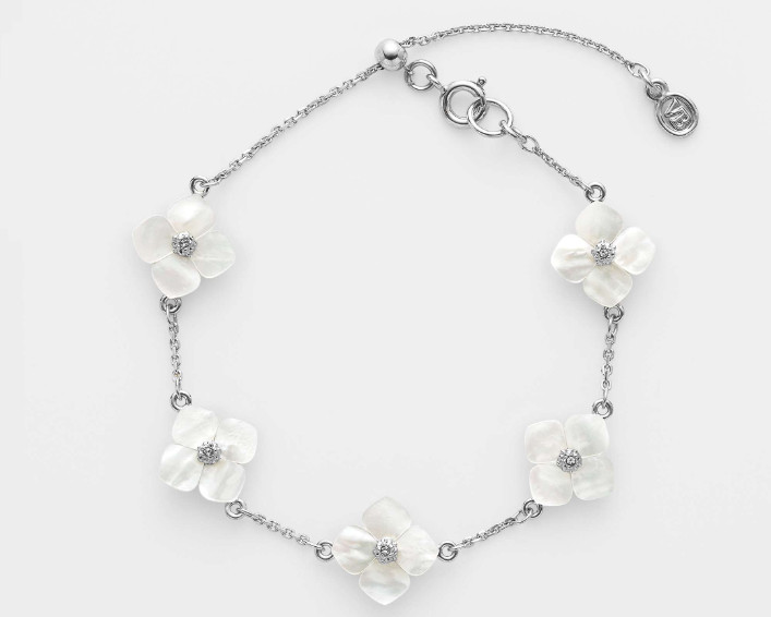 上質なシェルを1つ1つ丁寧にかたどったフラワーモチーフの人気シリーズ。