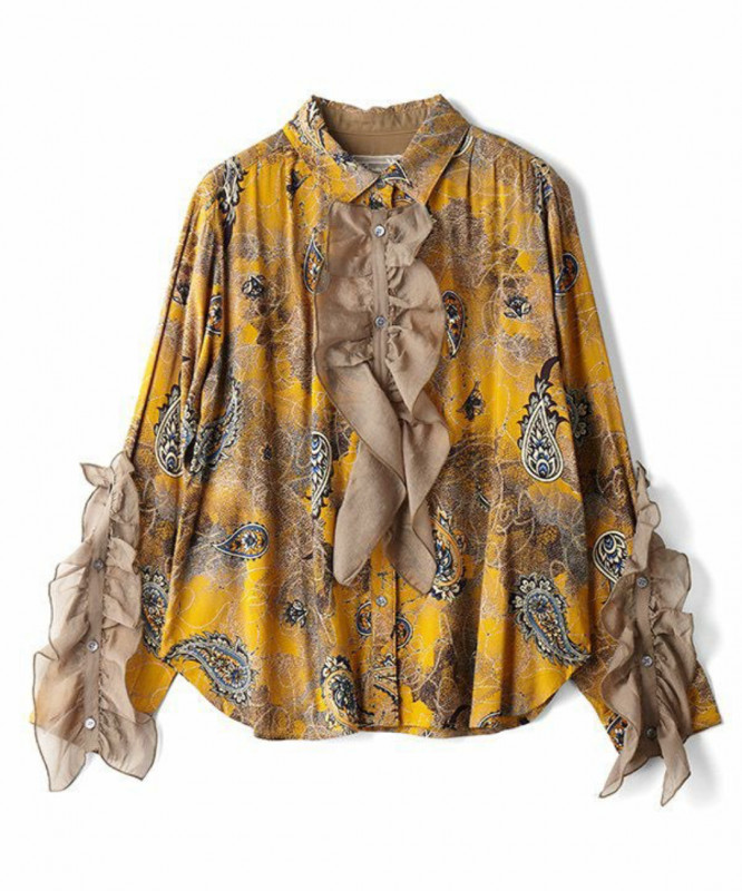 ゴージャスなフリルは取り外し可能で、フリルを付ければコーディネートのアクセントに、外せば定番の柄ブラウスとして活躍します 💖