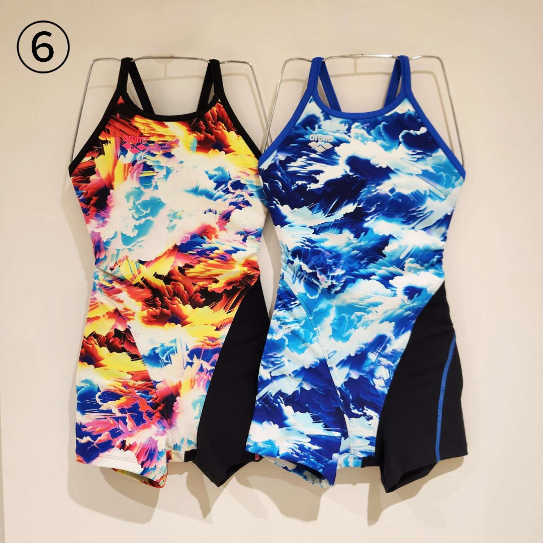 シーズンテーマのSTORM CLOUDSのデザインで、エネルギーを蓄積した雲をイメージしたカラフルな色彩とコントラストのあるグラデーションで視覚的にインパクトのあるグラフィックの水着や、