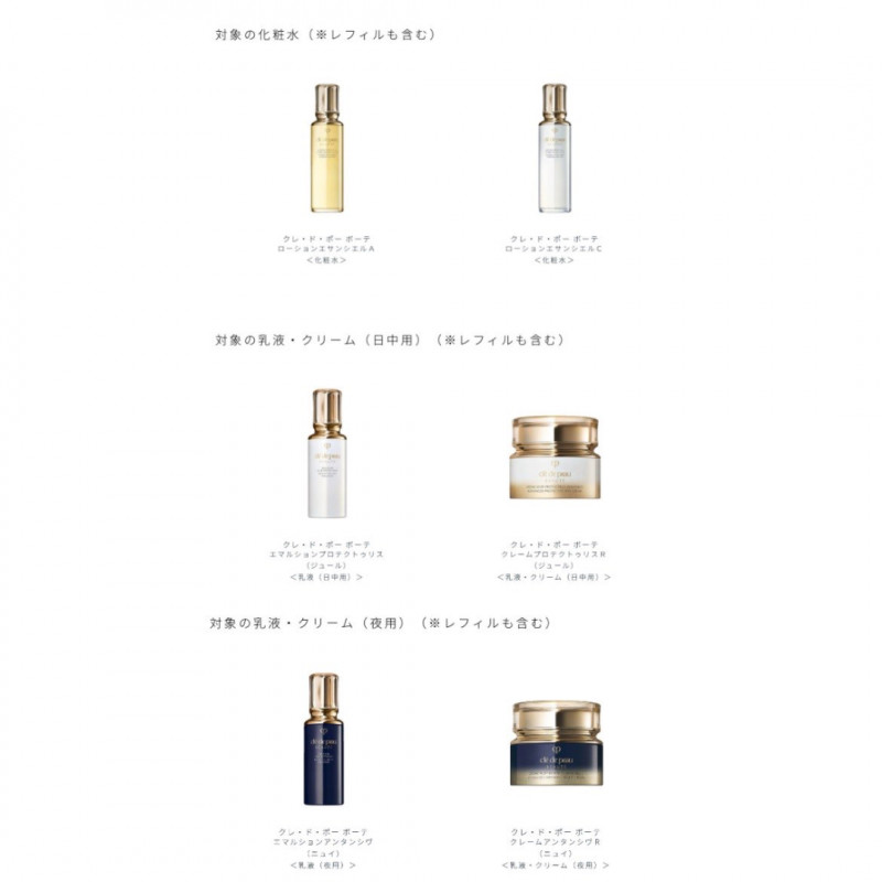 対象の化粧水または乳液またはクリーム(日中用または夜用)現品※