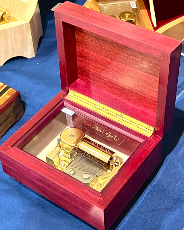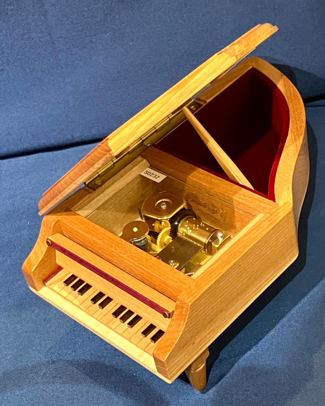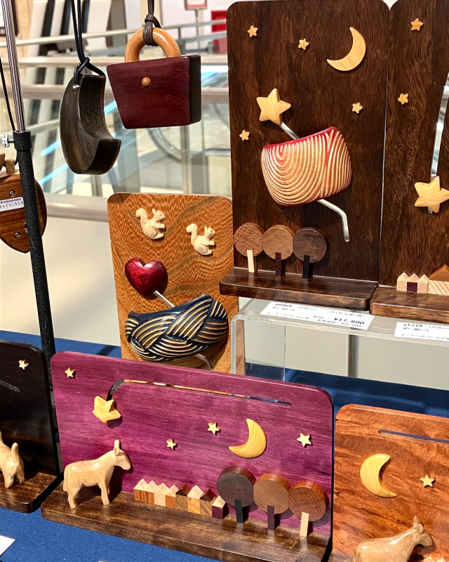 本物のようにフタが開くグランドピアノ型オルゴールや、カリンのこぶを切り出して仕上げた美しい木目のバッグ等、アート感覚の作品約100点を展示販売いたします。