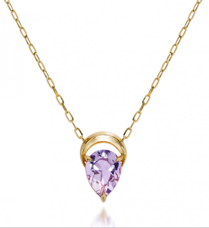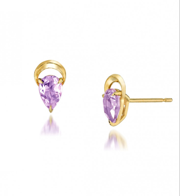下弦の月をイメージした地金の造形とアメシストの洗練された美しいデザイン“CRESCENT DROP”