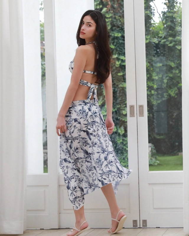 リゾート感溢れるボタニカル柄がツートーンカラーでプリントされており、よりエレガントで大人っぽい印象に♡