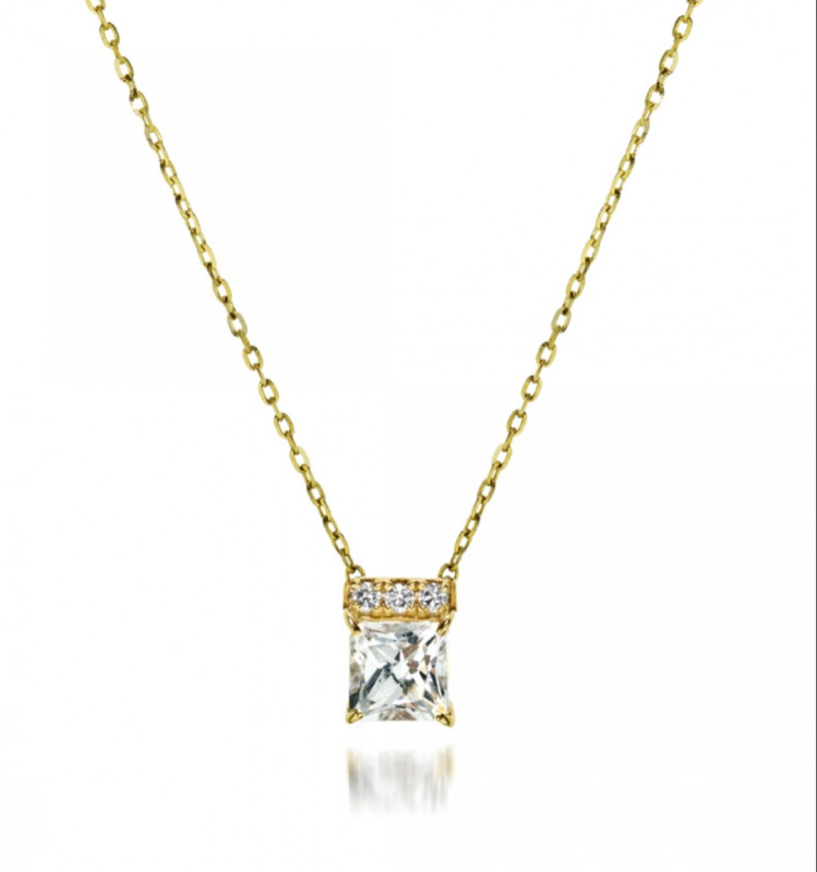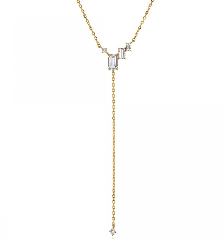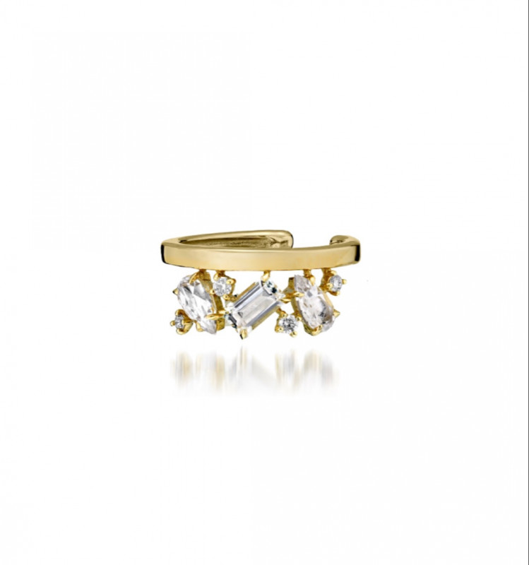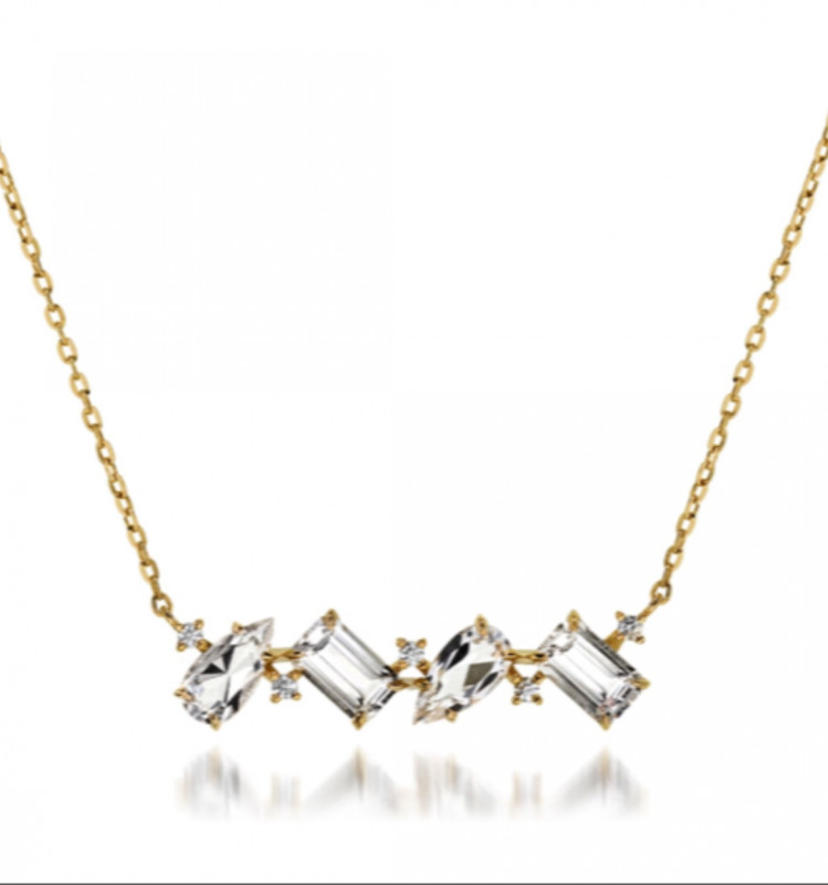 透明な輝きを放つクォーツに、ペアシェイプ、オクタゴン(長方形)の2種類のカットを施し組み合わせました。