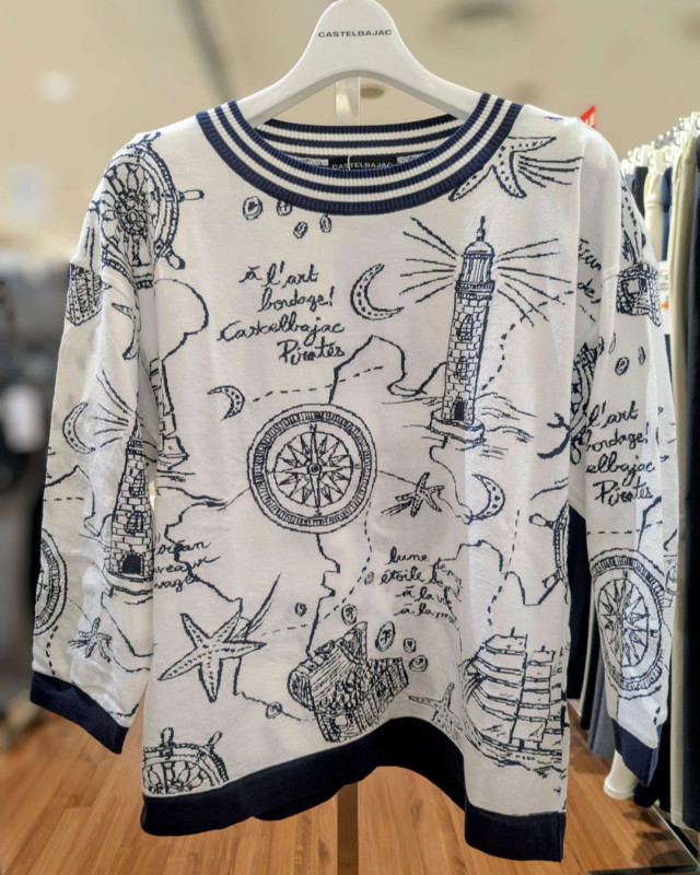 パイレーツの海図をイメージした柄に不思議な肌触りのニット。