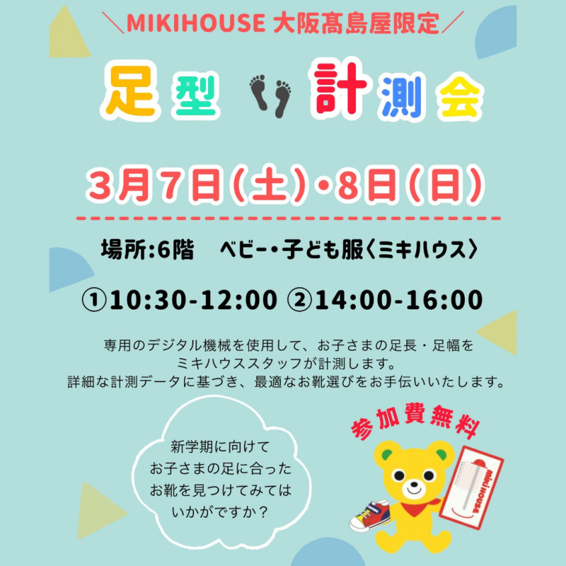 3月7日(土)・8日(日)の2日間にて専用のデジタル機材を使用した【足型計測会】を開催いたします。