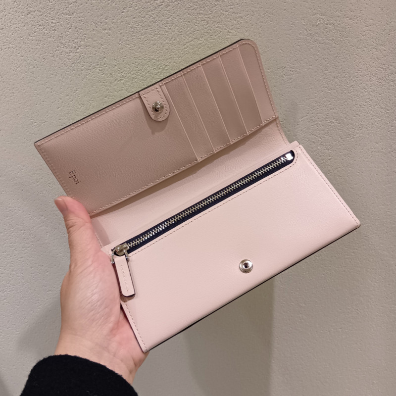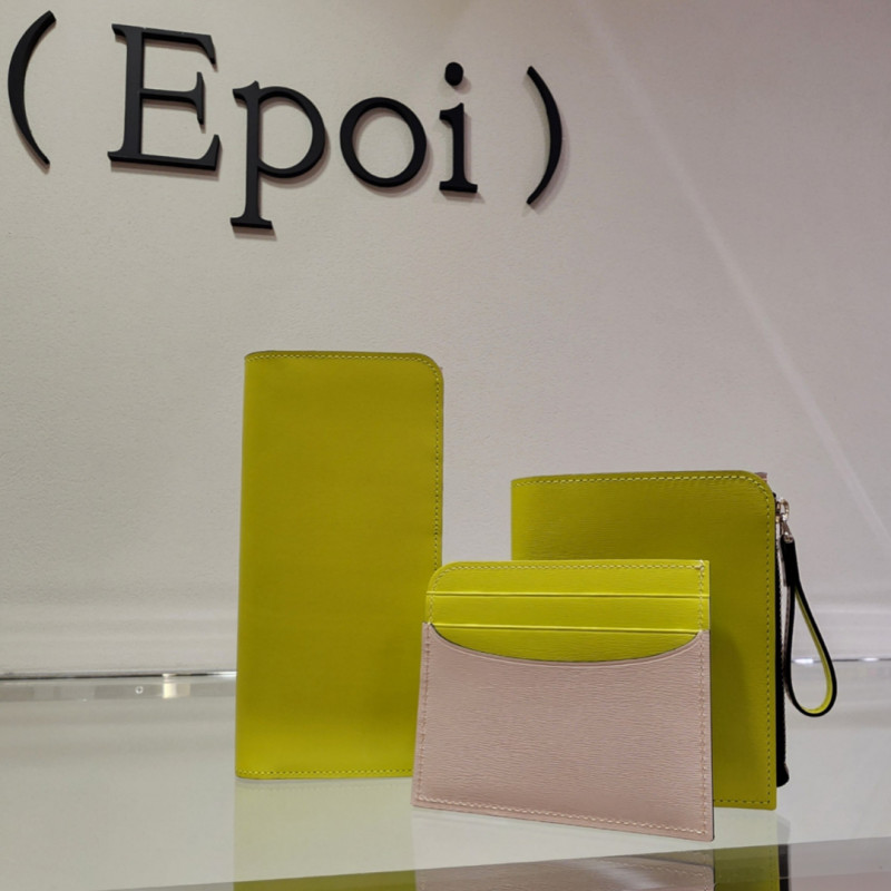 フランス・デュプイ社のマロカーフを贅沢に使用。ゆるやかな曲線のデザインと、コントラストをきかせたコンビネーションカラーが特徴のミニマルでありながら存在感を放つエポイらしいウォレットコレクション。