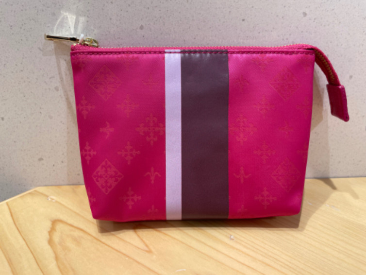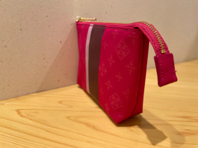 アシンメトリーな2カラーラインがアクセントになったポーチ。