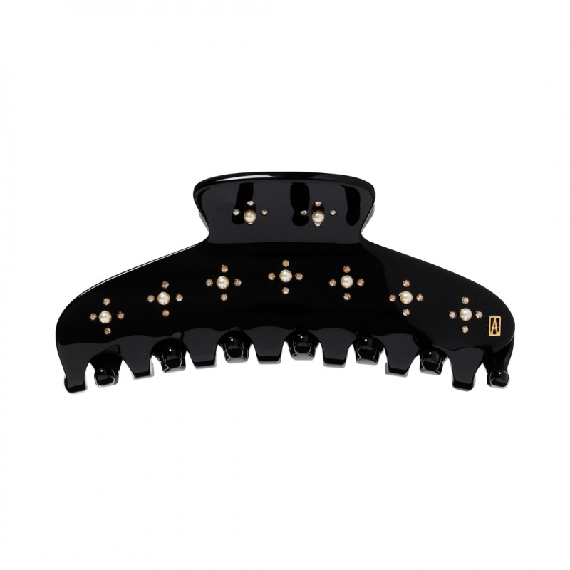 セットされたスワロフスキー®︎・クリスタルパールとスワロフスキー®︎・クリスタルが、さりげなくきらめくクリップ。