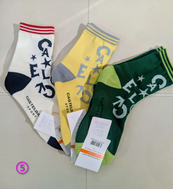 ⑤ロゴ柄クルー丈ソックス。