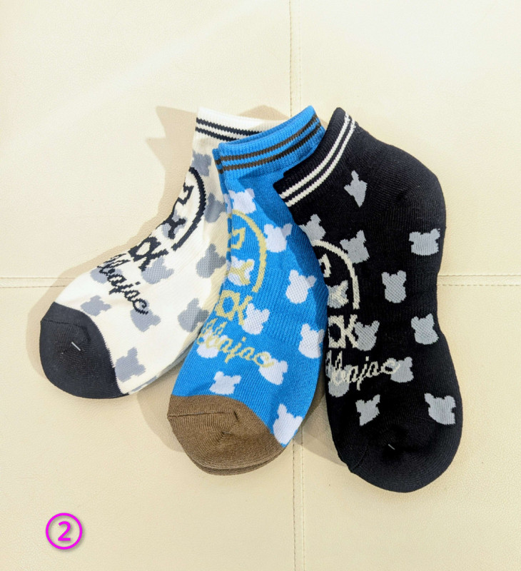 ②KUMA総柄家紋スニーカー丈ソックス。