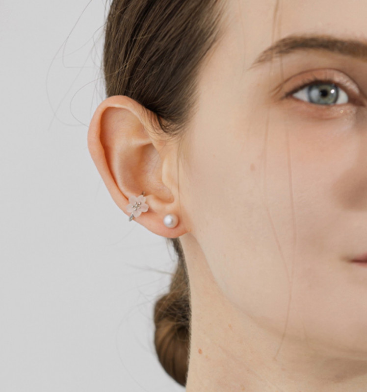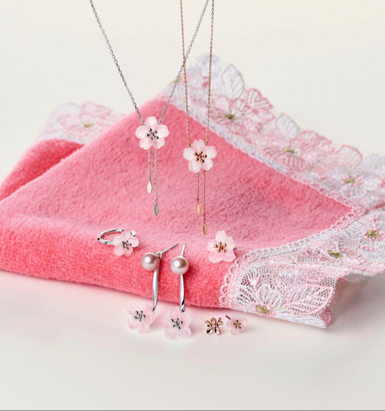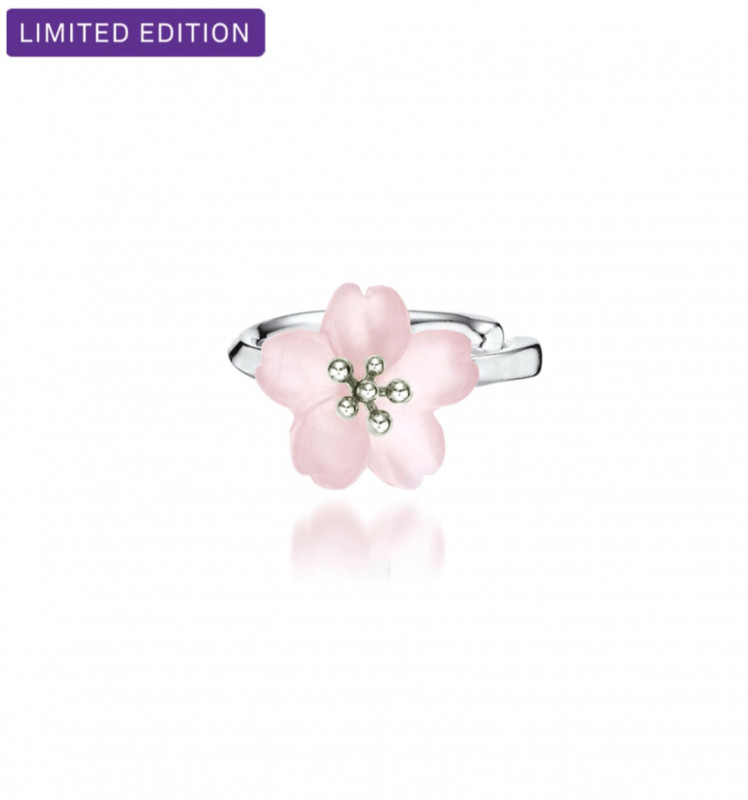 センターに細やかなディティールを施した地金が立体感を生み、淡く優美なピンクカラーの桜が明るく可憐な印象を与えてくれます。
