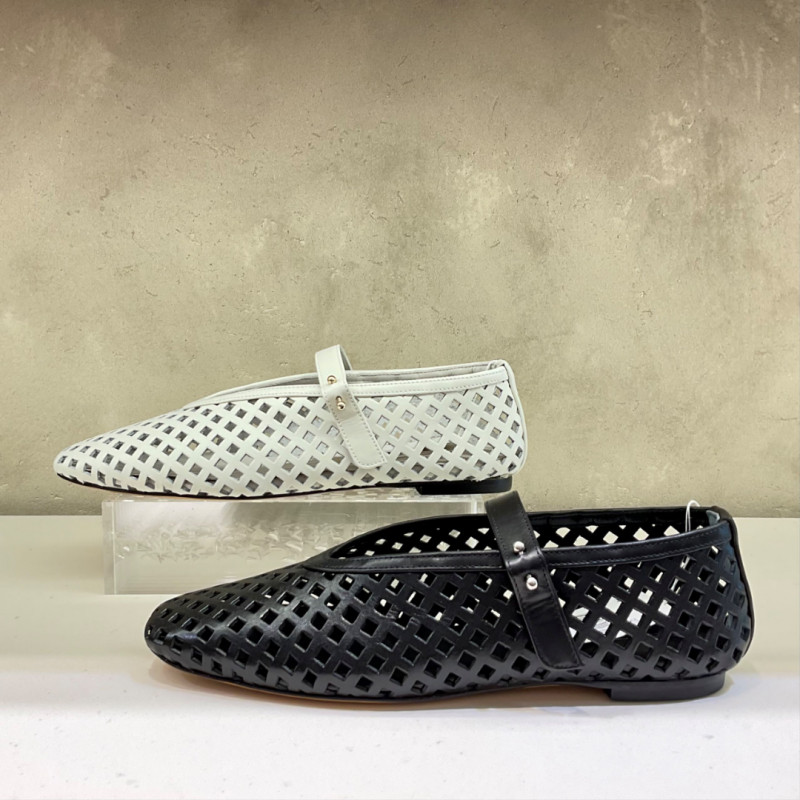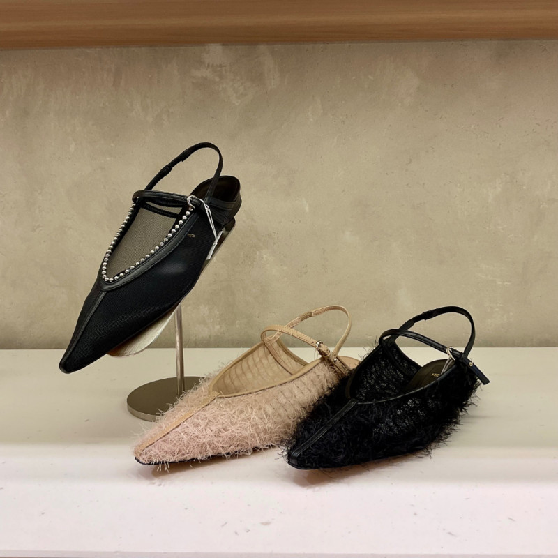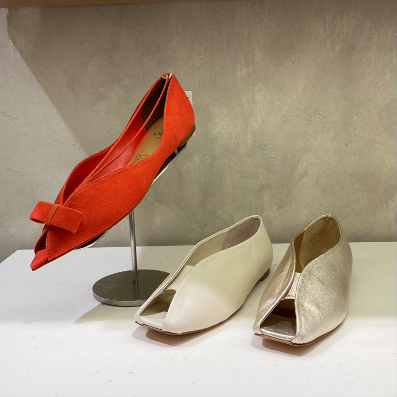 オープントゥや、バックストリングスの軽やかなフラットパンプス。