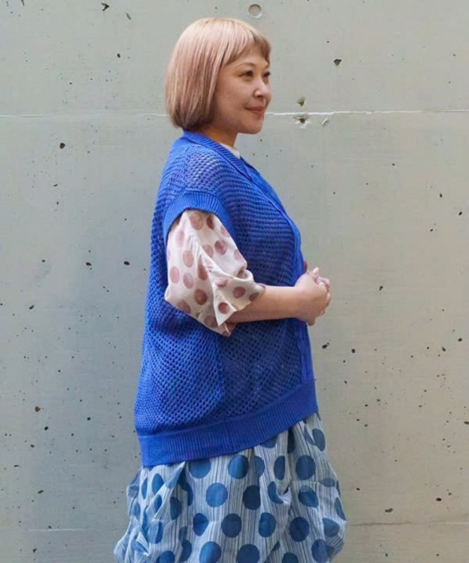 メッシュ編みならではの軽やかな透け感が特徴で、
