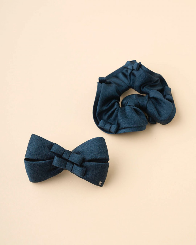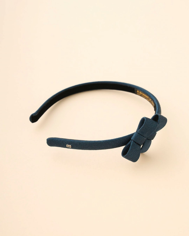 ミニリボンがポイントの、ヴィスコースとシルクを用いたシックなシリーズです。コンサバティブなスタイルにも合わせやすいダークネイビーで、カジュアルにもオケージョンにも使いやすいアイテムです。