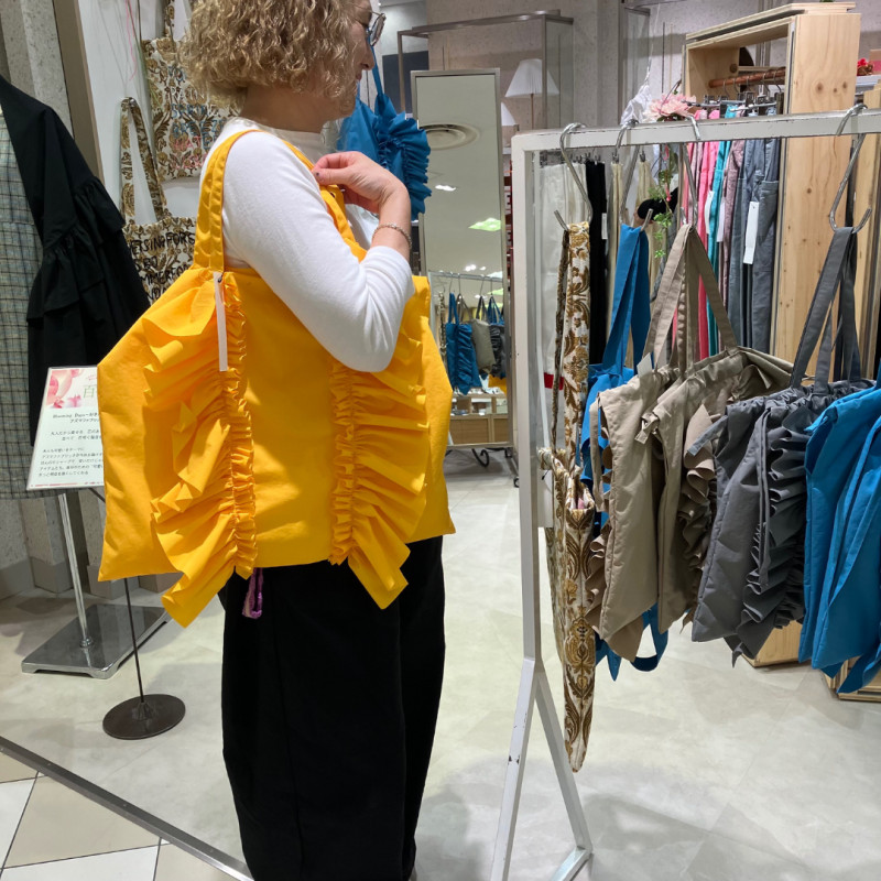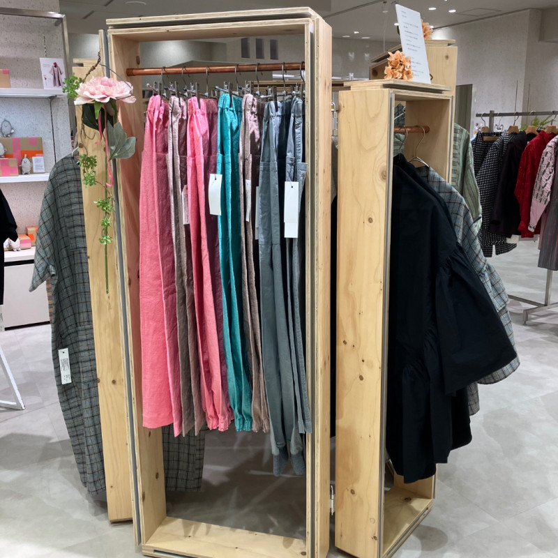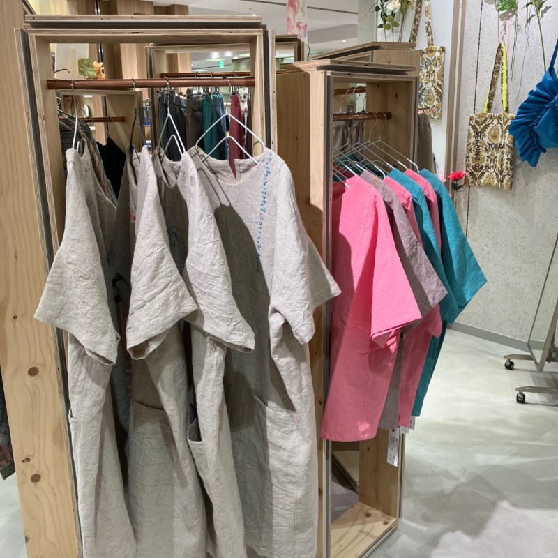 刺繍入りのワンピースやデッドストック生地で制作したバッグなど。