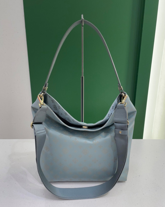 淡く優しいブルーに、グレーのモノグラム柄と