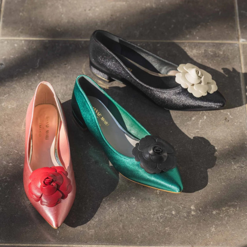 サテンの上品な光沢と、卑弥呼ならではのすっきりとしたシルエットが足元を美しく演出🌼