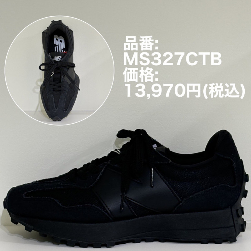 70年代を席巻した数々のニューバランスのレーシングシューズをアレンジしたレトロなフォルムに、ビッグNロゴを外側だけに配した印象的なルックスで提案する人気モデル「MS327」。トリプルブラックで服装に合わせやすいニュートラルなカラーで彩りました。