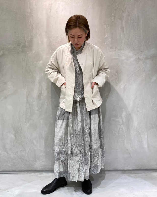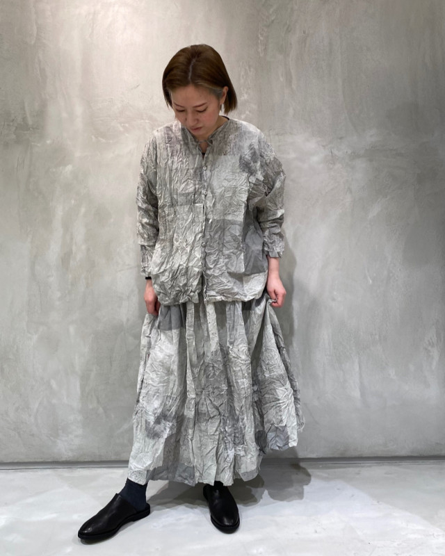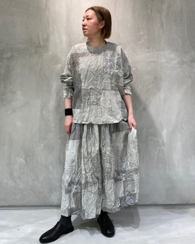 コットンローン素材に、あえてシルケット加工をせずにしぼ感を表現し、柔らかい風合いに仕上げ、京都でプリント加工を施しています。
