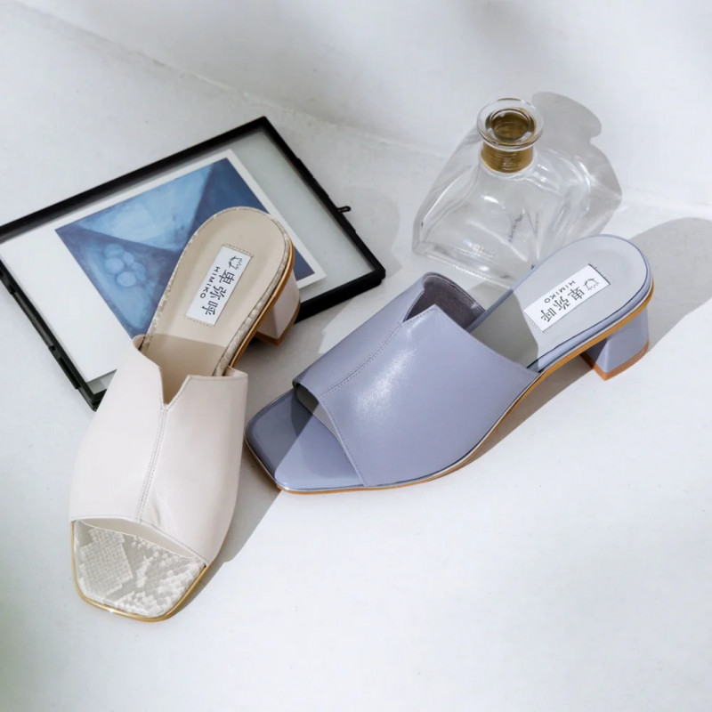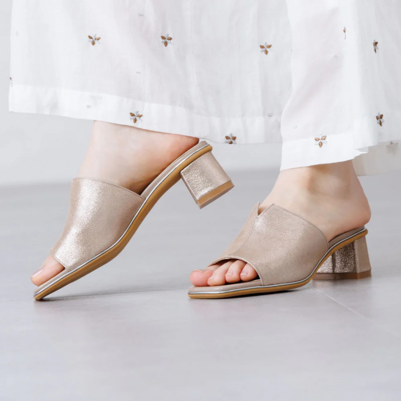 足を包み込んでくれる深めの甲のデザインにさり気ないVカットが上品なミュールサンダル👡