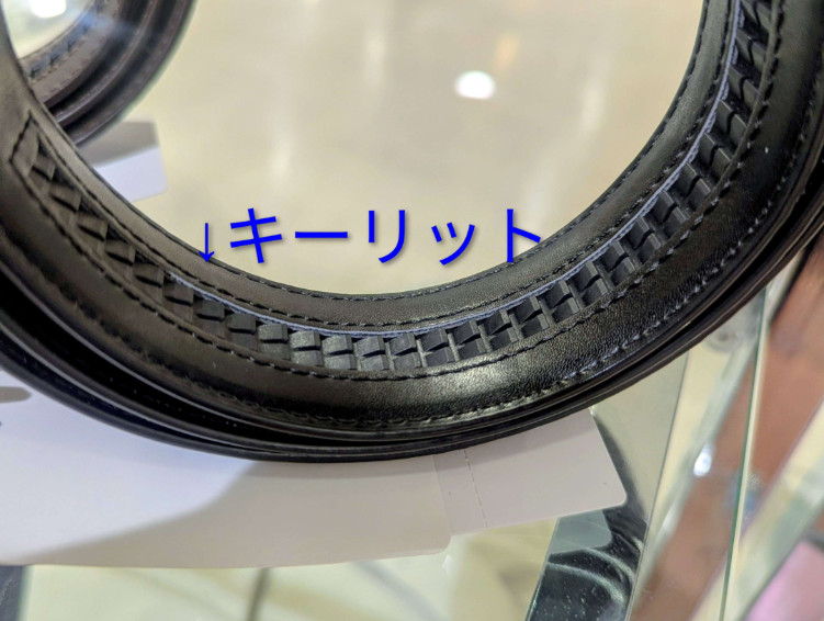 ベルト穴の代わりに裏面のレール(キーリット)とバックル内部のボタンを噛み合わせワンタッチで着脱、微調整が出来る便利なベルトです😊