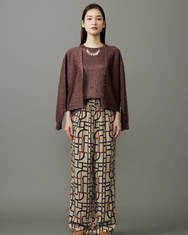 シンプルなトップスを合わせるだけで、印象的な素敵なコーディネートに。