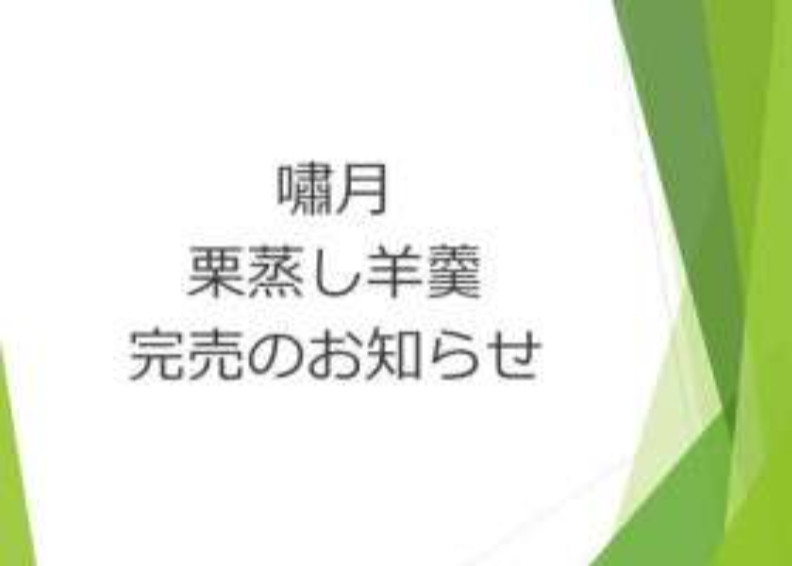 ご予約を承っておりました、10月18日(土)販売予定の京都・嘯月の「栗蒸し羊羹」ですが、ご予約が予定数量に達し完売となりました。