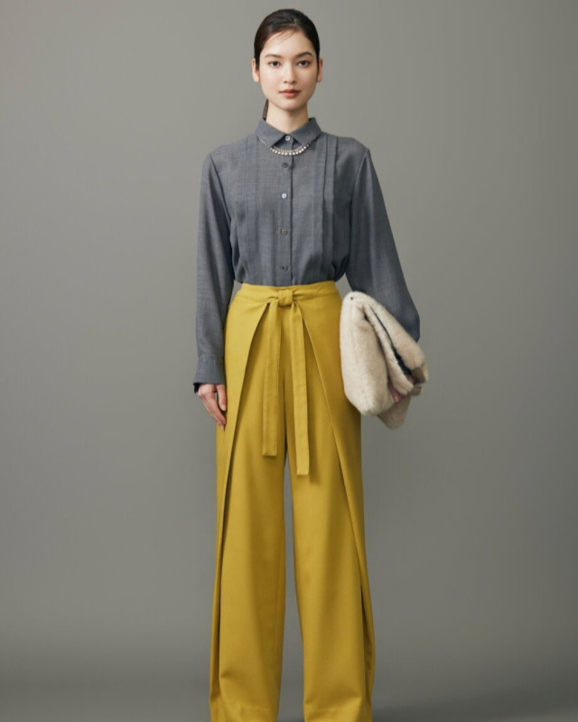 ラップスカートのようなディテールにこだわったデザインパンツです♪