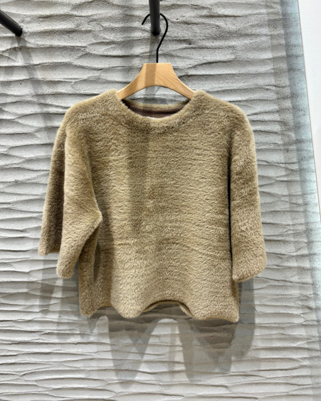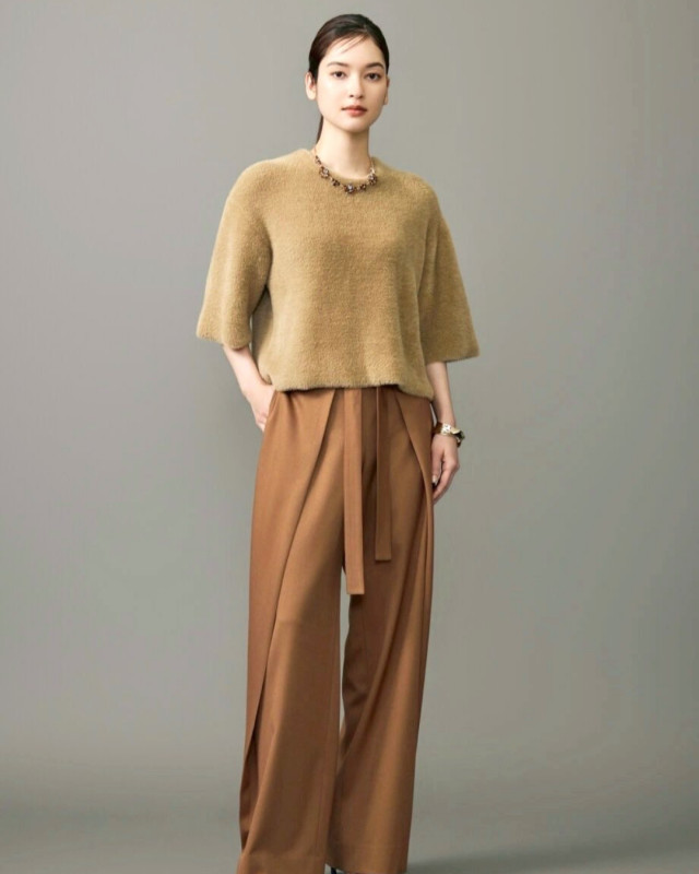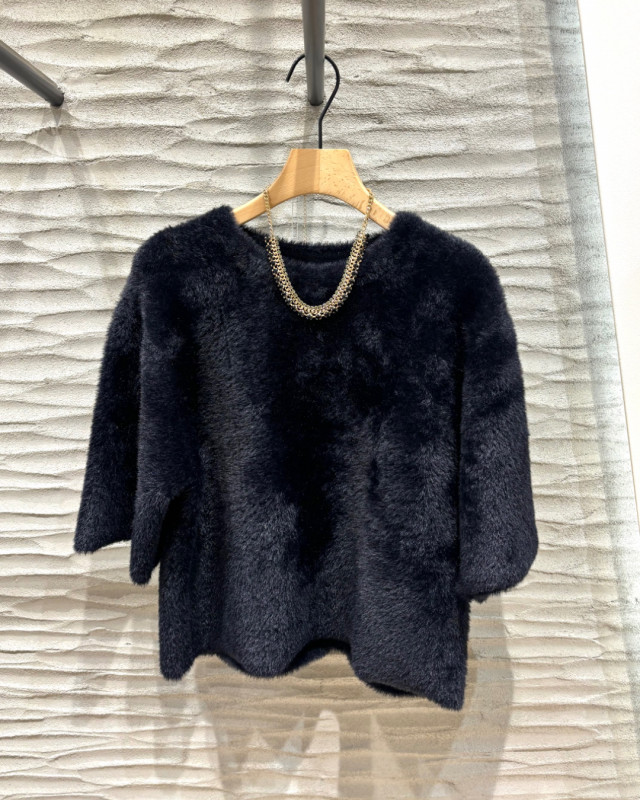 ふわふわとした毛足のある素材が印象的なニット