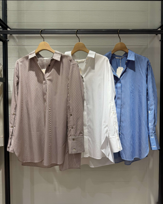 シャツの前だけインしたり、肌寒い季節には上からニットを重ねて、釦を外したレイヤードスタイルもおすすめです。