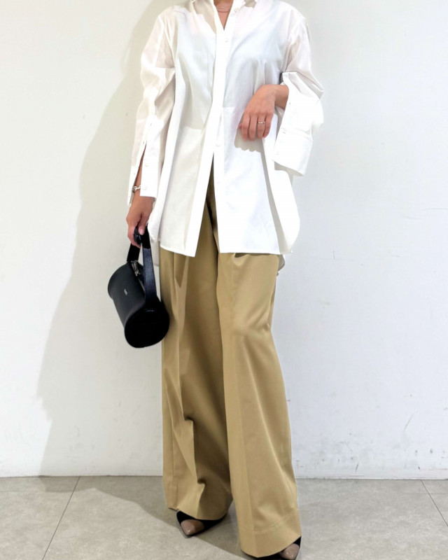 着丈を長めで、袖口のスリットデザインが、抜け感を演出するさりげないポイントに。