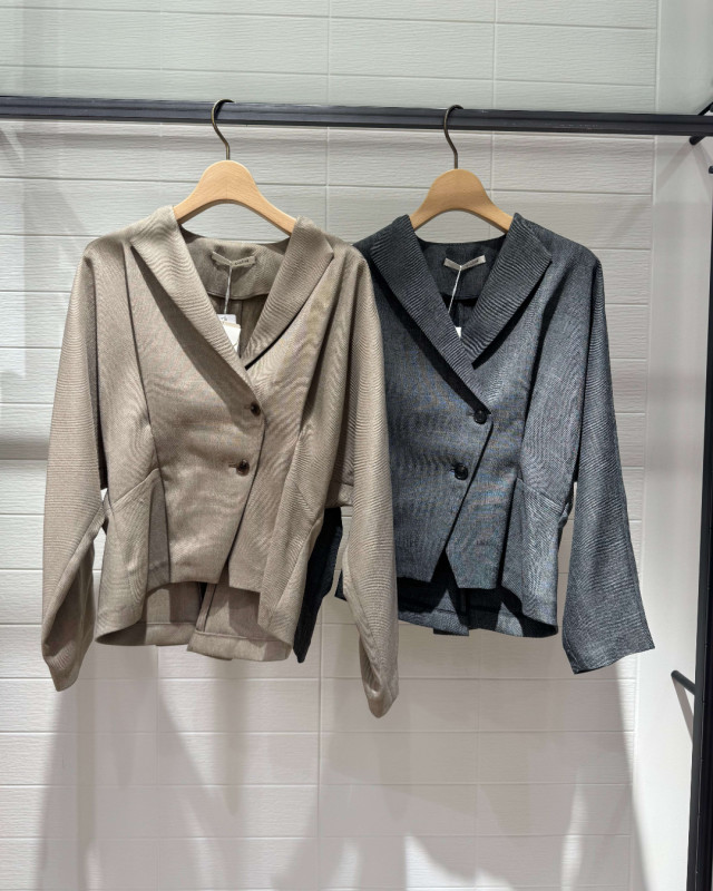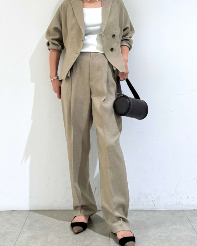 表情のある軽やかなツイード素材を使用し、冬にはコートのインナーにも対応可能。