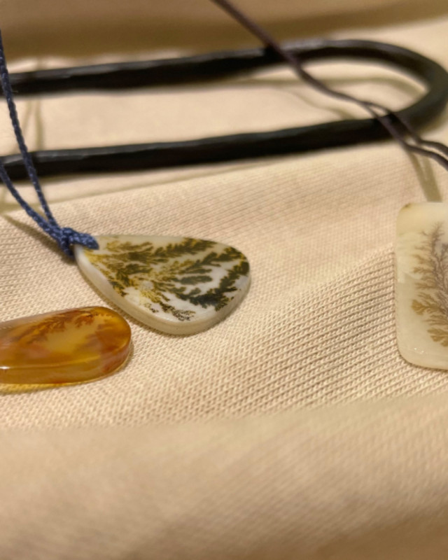 長い年月をかけて、自然の中で偶然生み出された色・柄はひとつとして同じものはなく、石の中に小さな植物が入っているかのような神秘的な様相を表します。