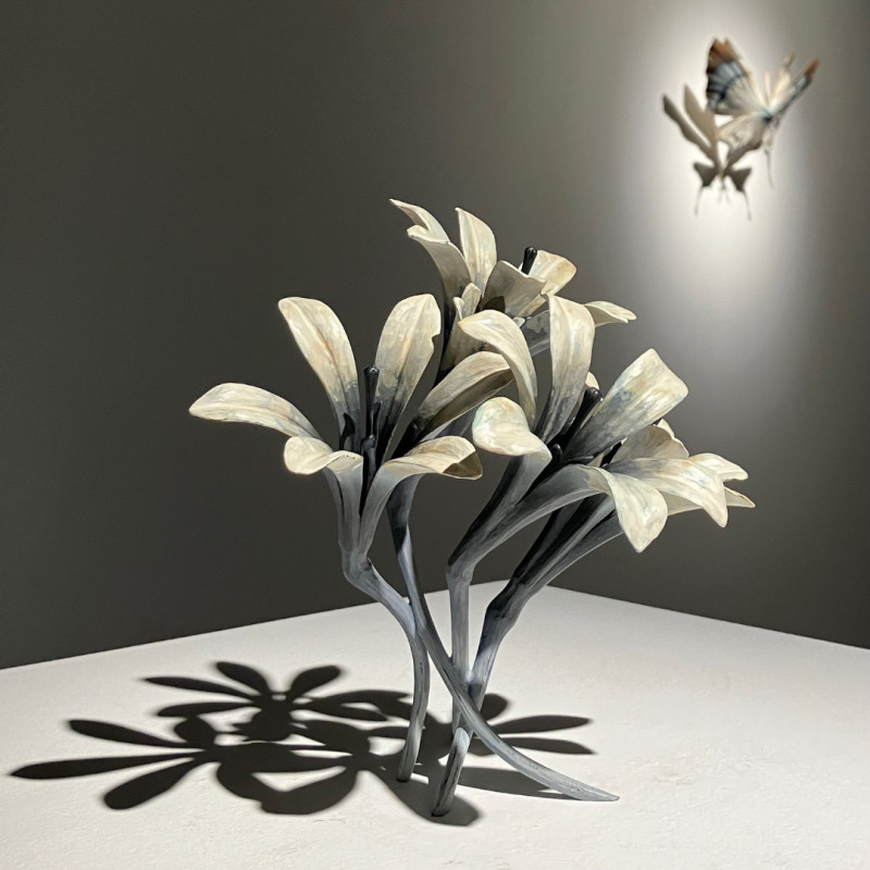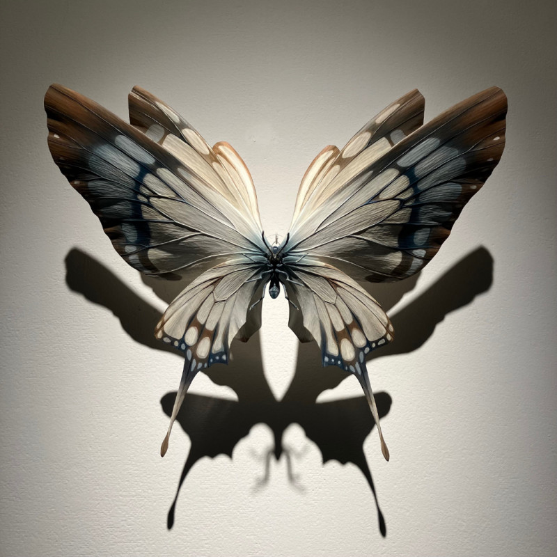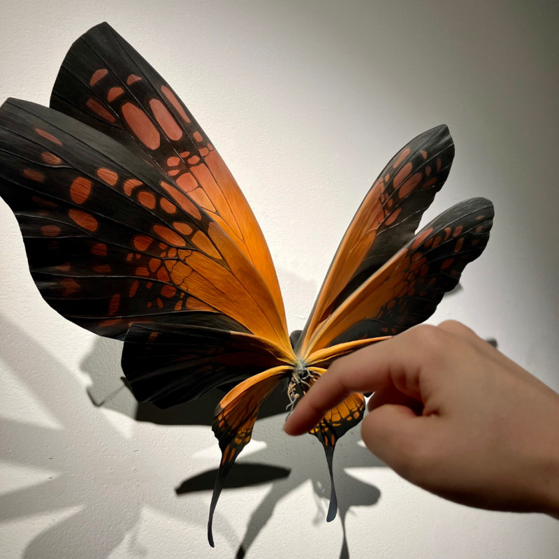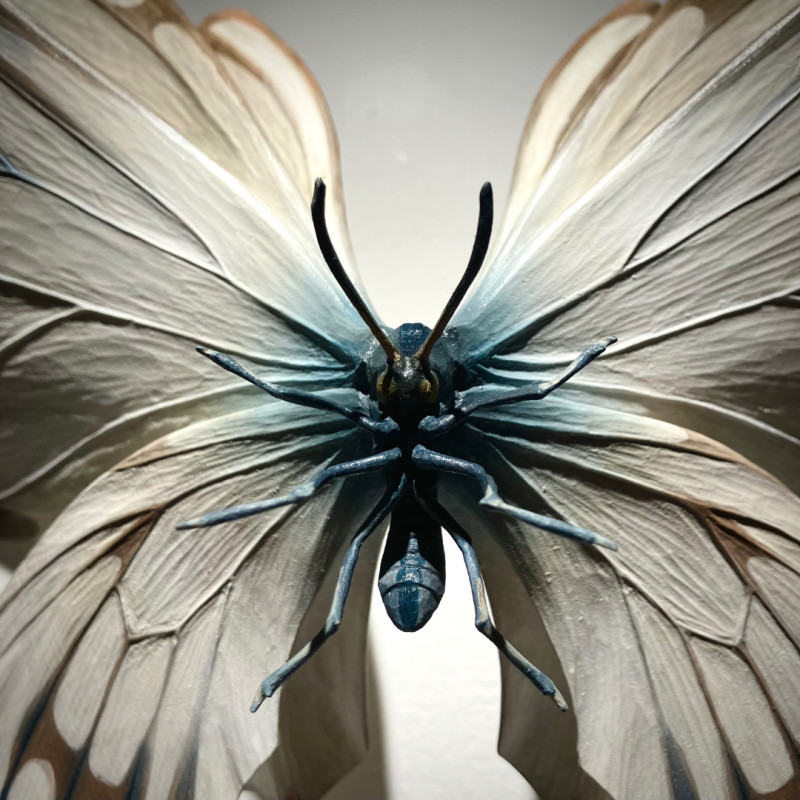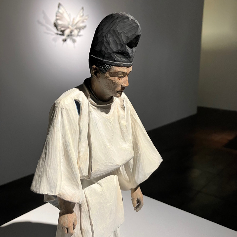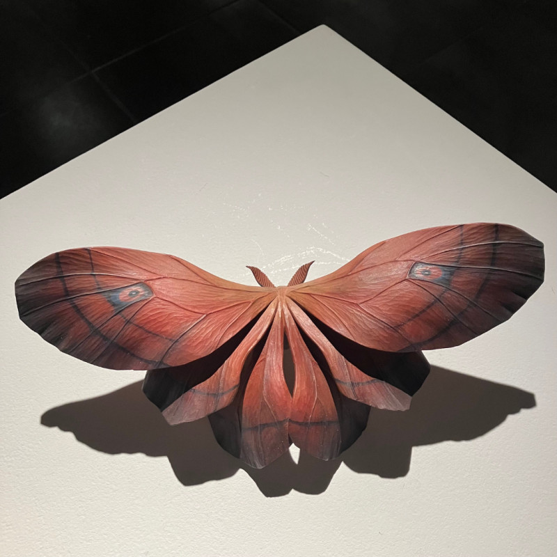小島さんの作り出す蝶や蛾、人物をモチーフとした木彫作品たちは、そのひとつひとつが静かに時を内包し、観る者に“時間”という長大な存在を想起させます。