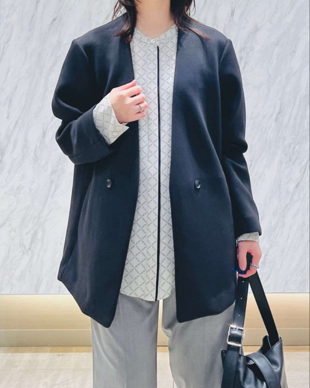 【コンパクトWフェイス】ノーカラージャケットのご紹介です。