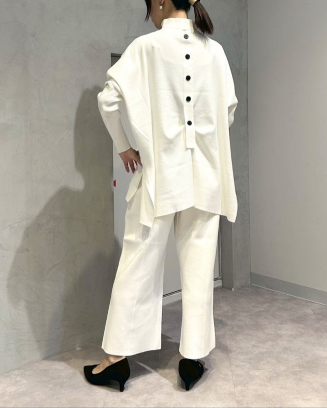CAST:定番のバックボタンディテールが目を引く、肌触りの良いニット。