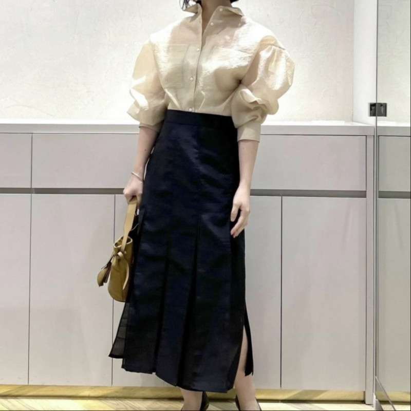 ボリュームスリーブシアーシャツ 38サイズのみ ベージュ、ライトグレー