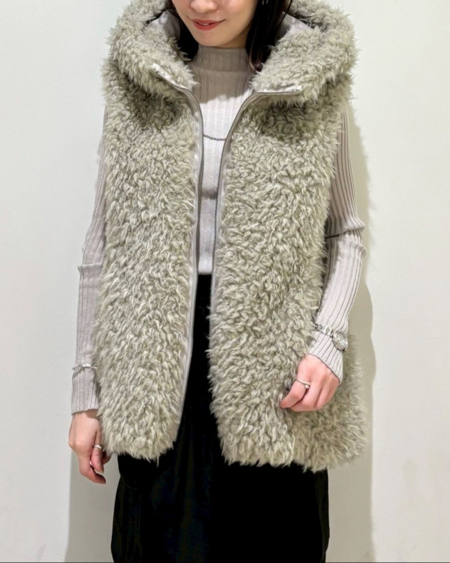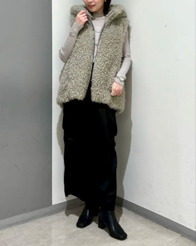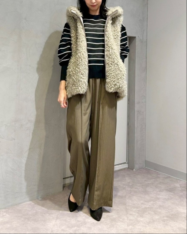 ゆったりとしたシルエットで厚手のニットとも重ねやすく、立体感が出るデザイン。