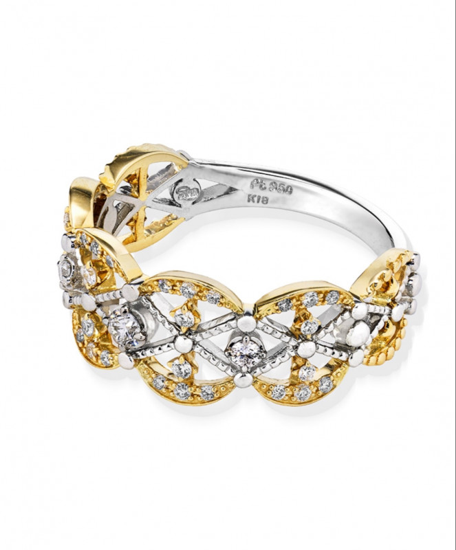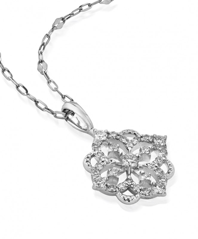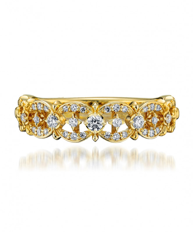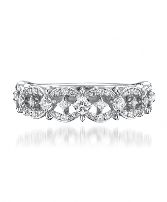 複雑なレース模様を再現したクラフトマンシップ溢れるデザインは繊細に輝き、身につけるだけで華やぎを与えてくれます。