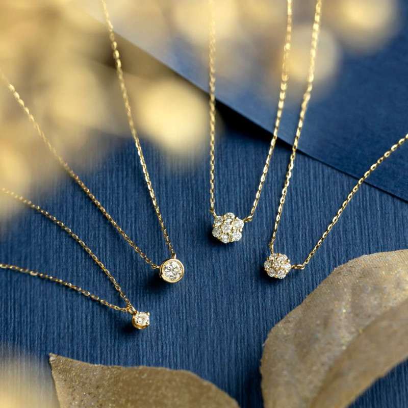 ①4点爪留めのシンプルな一粒ネックレスがK18YGで新登場。照りの良いルースを厳選してお作りしました✨